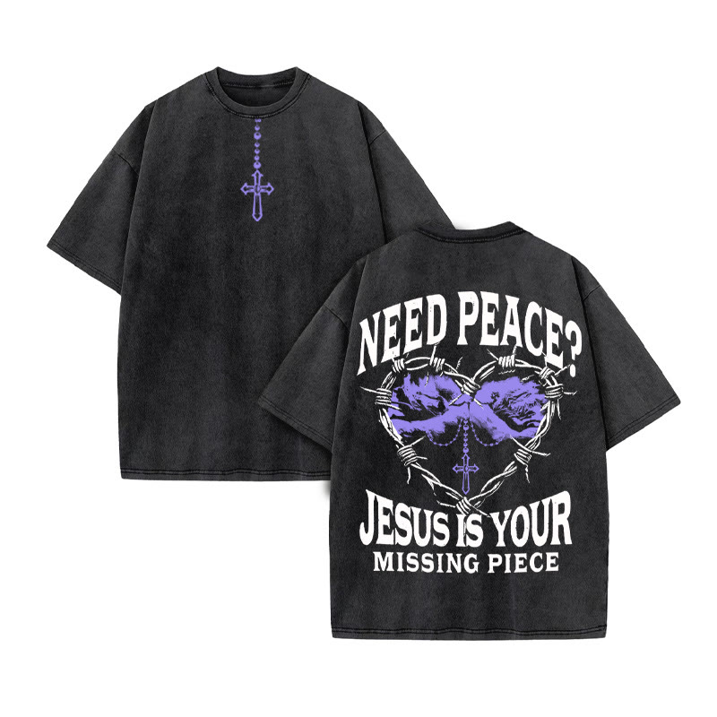 Unisex Jesus Is Your Missing Piece Print Acid Washed T-shirt