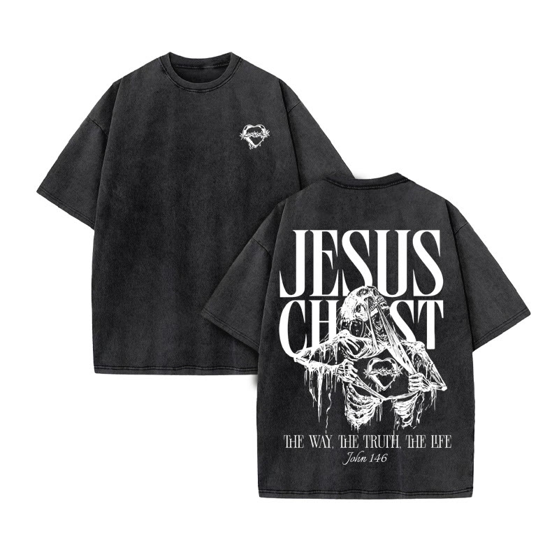 Unisex JESUS CHRIST Print Acid Washed T-shirt