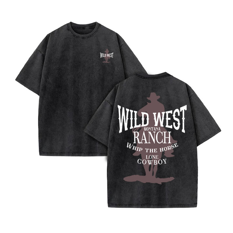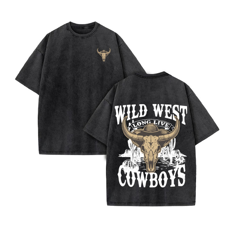 Unisex COWBOYS Western Style Print Acid Washed T-shirt