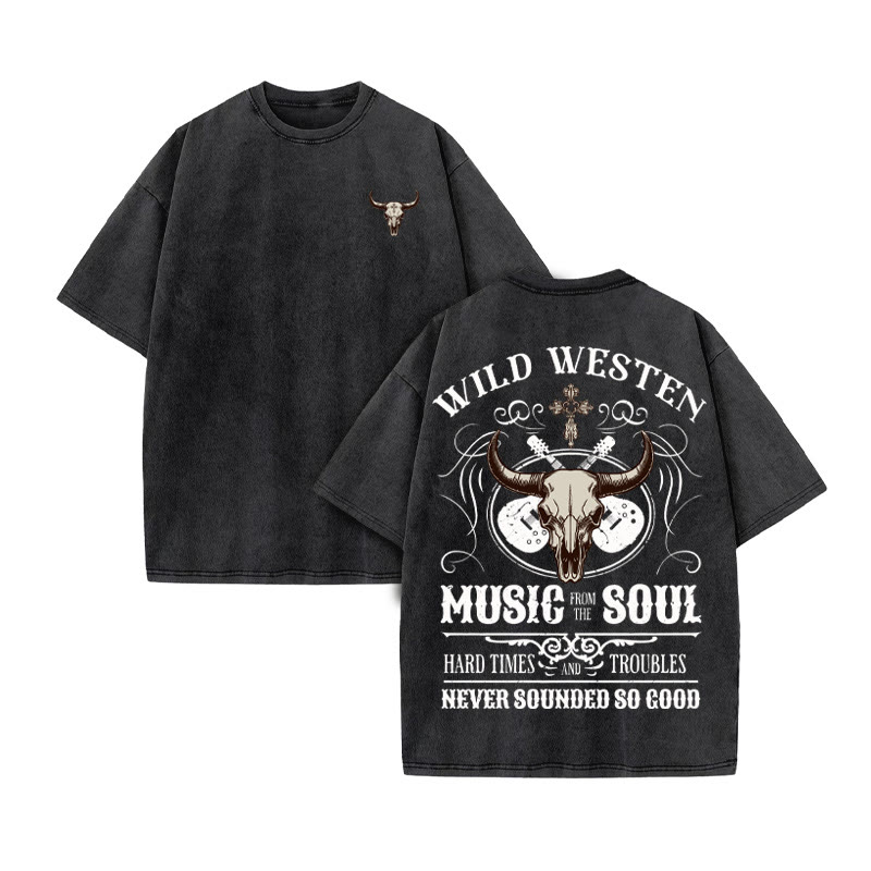 Unisex WESTEN MUSIC Western Style Print Acid Washed T-shirt