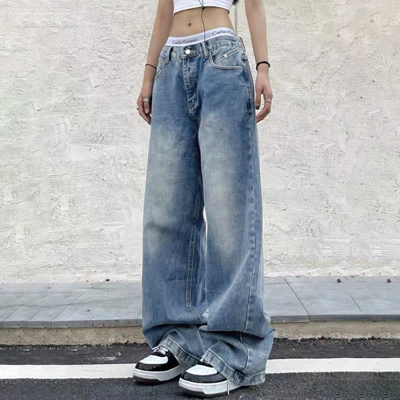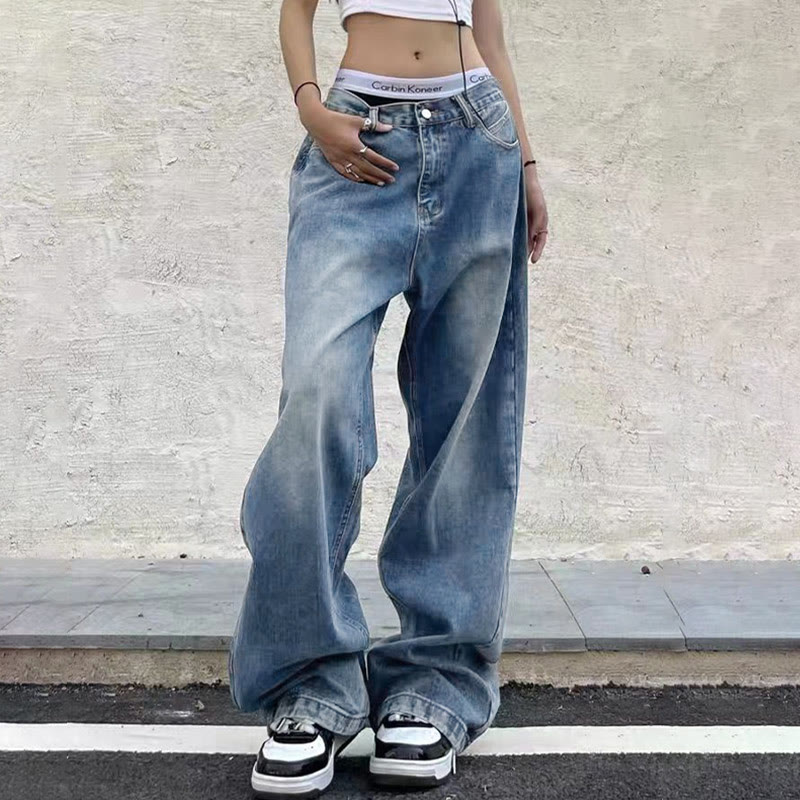 Vintage Blue Wide Leg Boyfriend Jeans