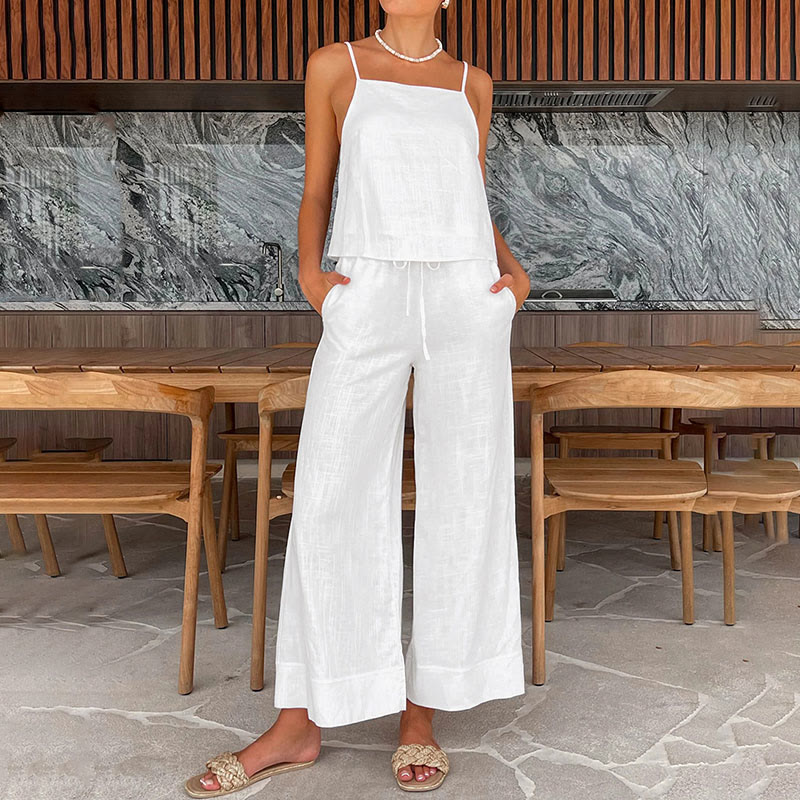 Casual Solid Color Loose Sleeveless Vest Set