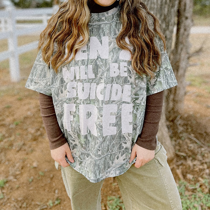 Unisex Gen Z Will Be Suicide Free Dead Leaves Camouflage Print Short-sleeved T-shirt