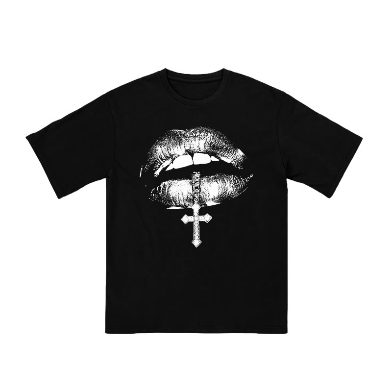 Unisex Biting Cross Necklace Print T-shirt