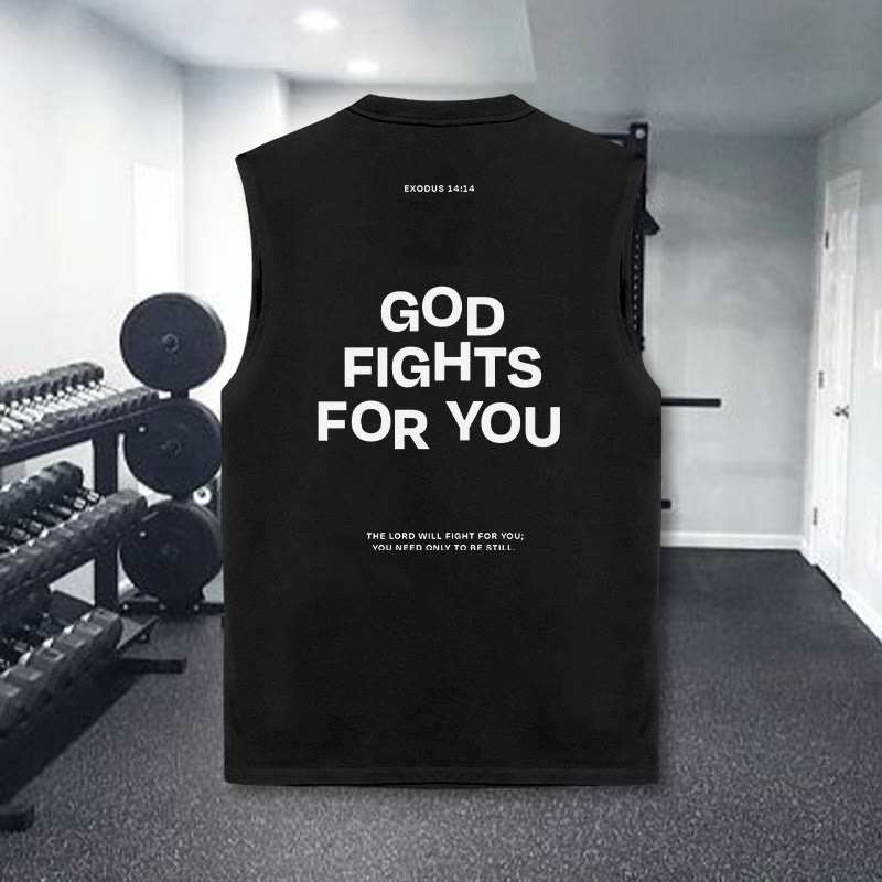 Dead Leaves Camouflage Jesus Loves You Print Sleeveless Tank Top