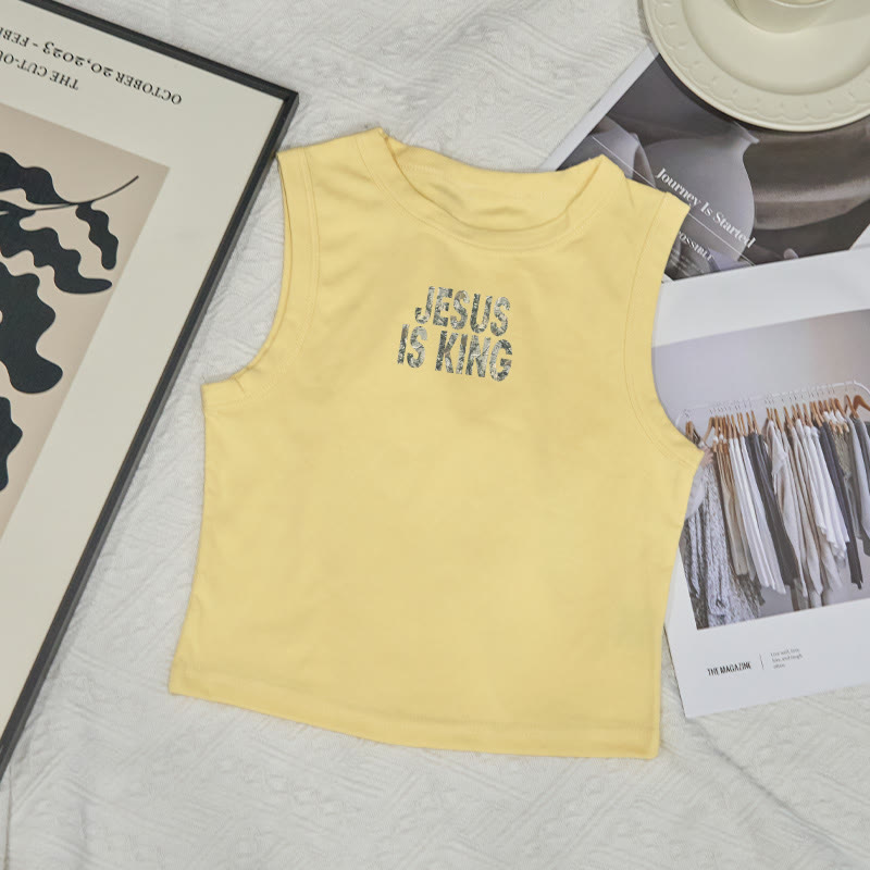 Dead Leaves Camouflage Jesus Is King Print Sleeveless Tank Top
