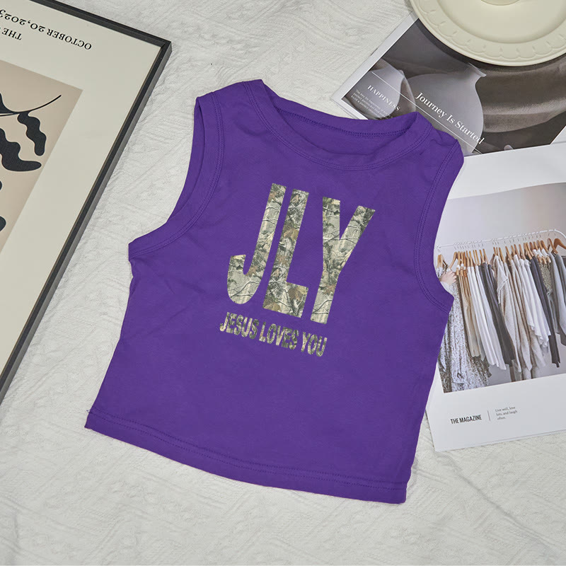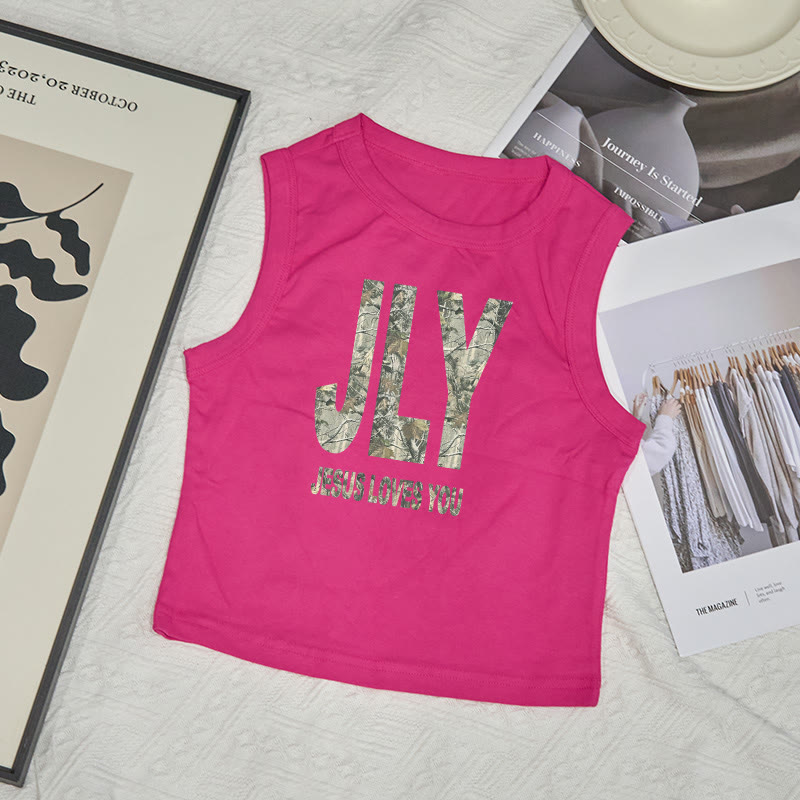 Dead Leaves Camouflage Jesus Loves You Jly Print Sleeveless Tank Top