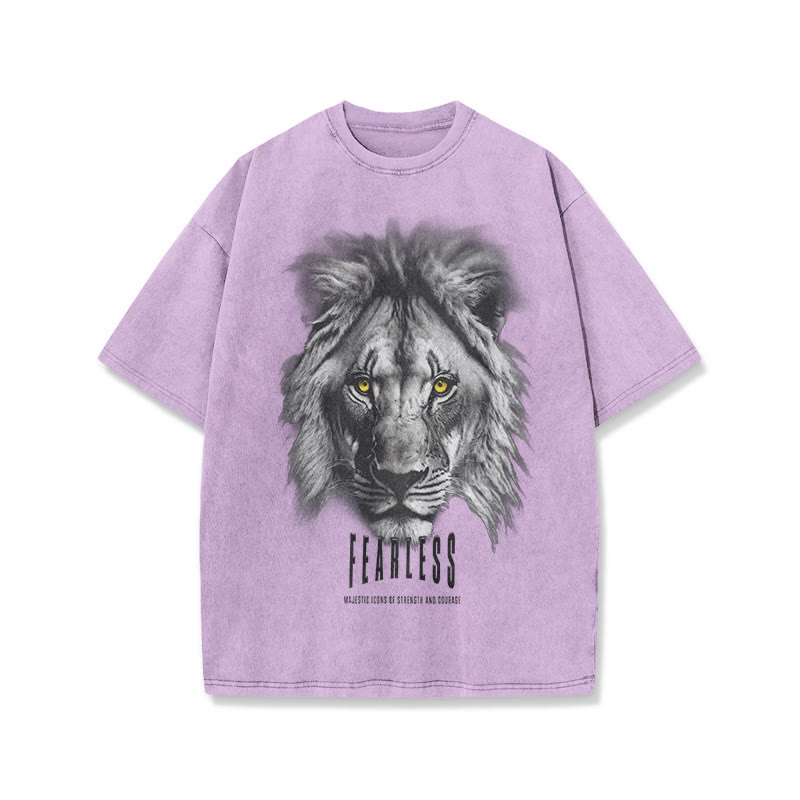 Fearless Lions Printed Washed T-shirt