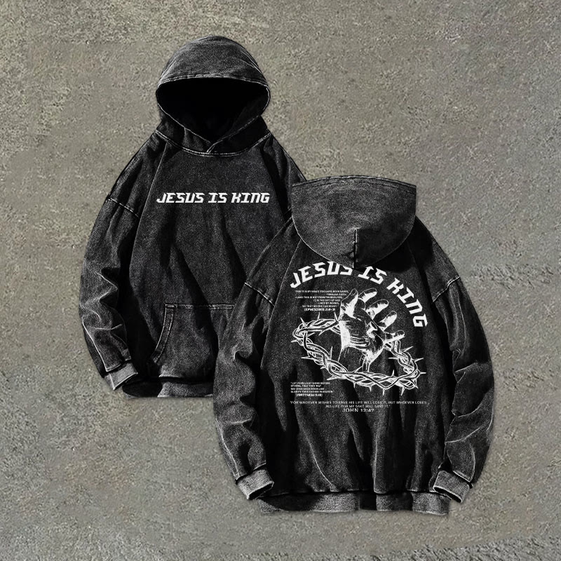 Jesus Is King Print Causal Acid Washed Hoodie