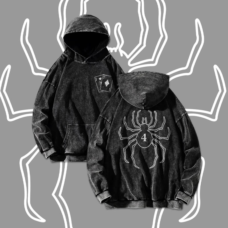 Spider No. 4 Print Acid Washed Hoodie