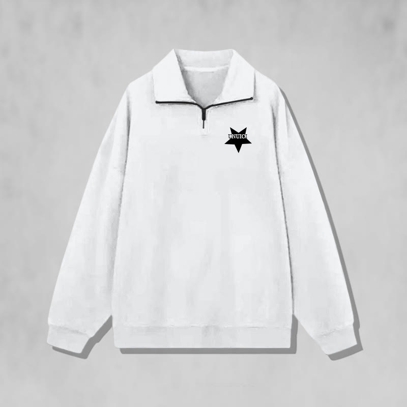 Stand Collar Vintage Star Print Zipper Casual Fleece Sweatshirt
