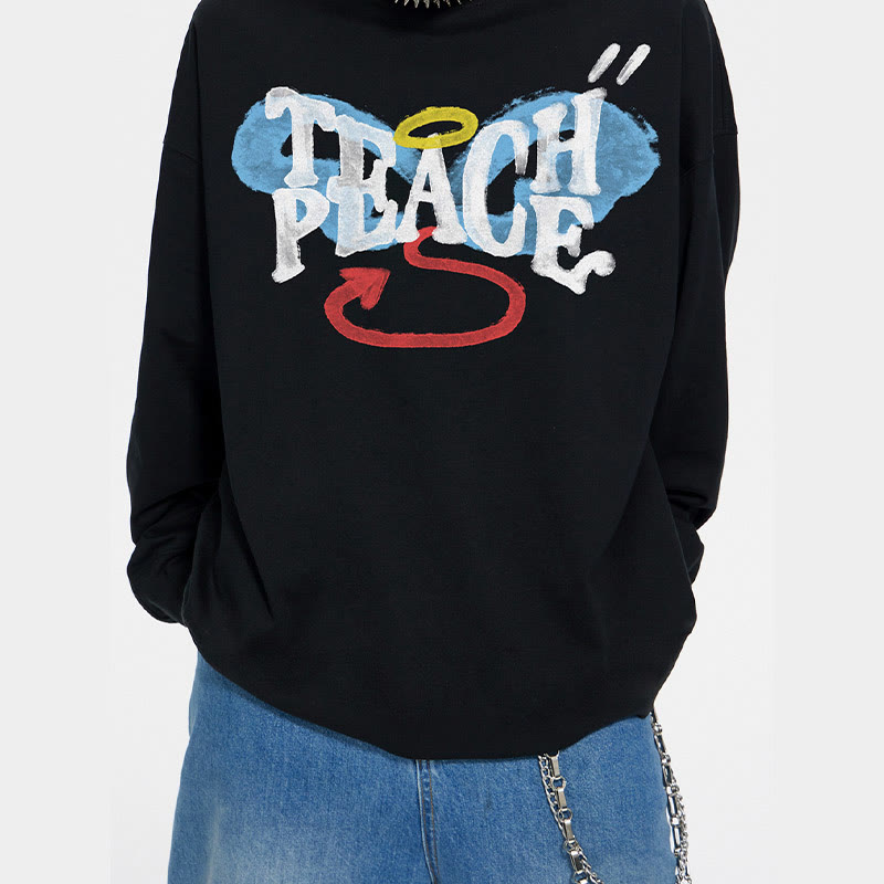 Street Fleece Butterfly Graffiti Print Sweatshirt
