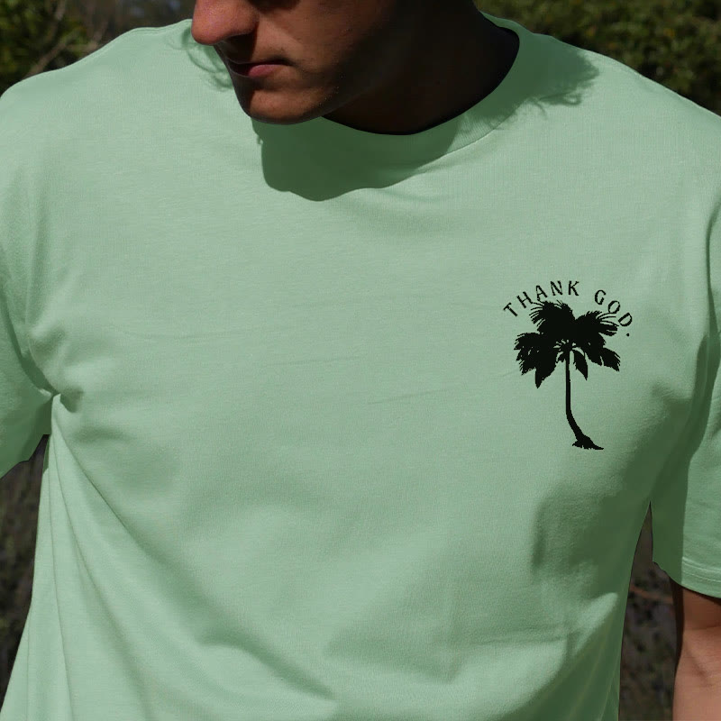 Thank God Coconut Tree Print T-shirt