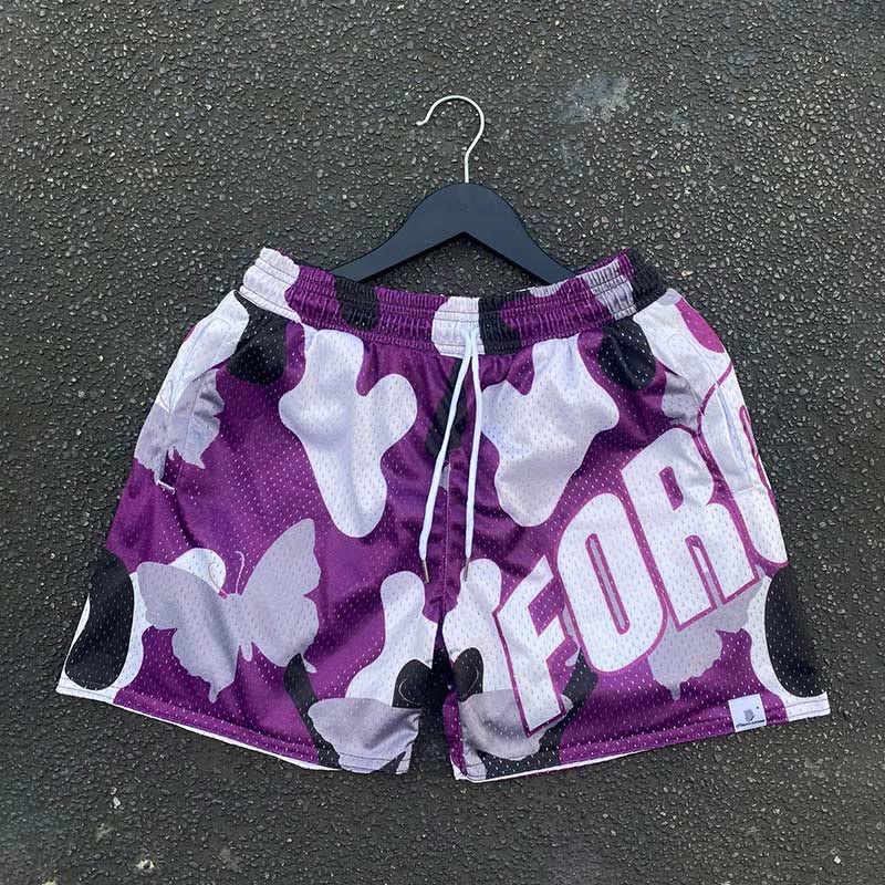 Butterfly Camo Print Mesh Shorts