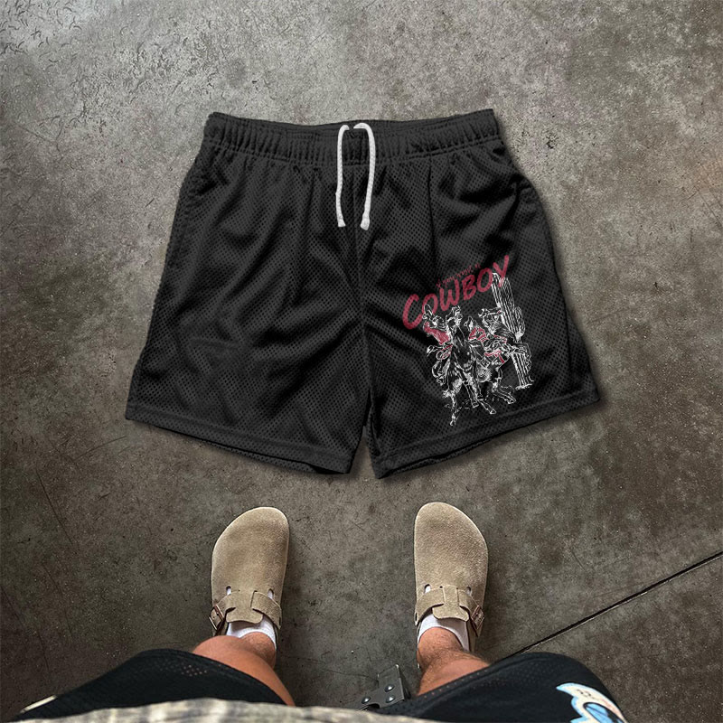 COWBOY Print Causal Mesh Shorts
