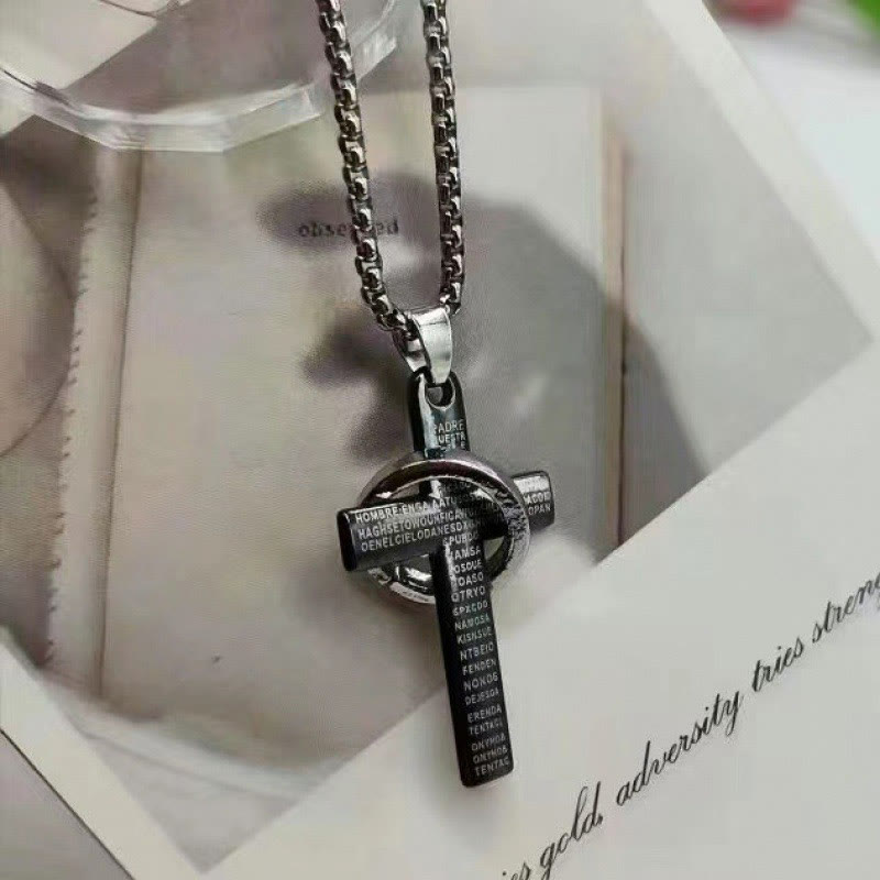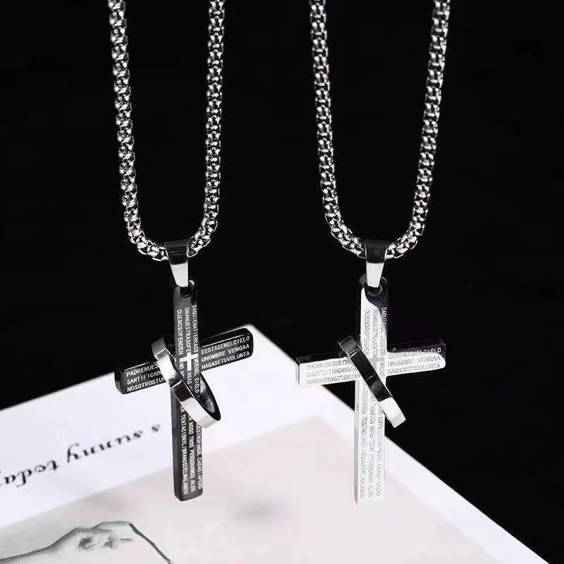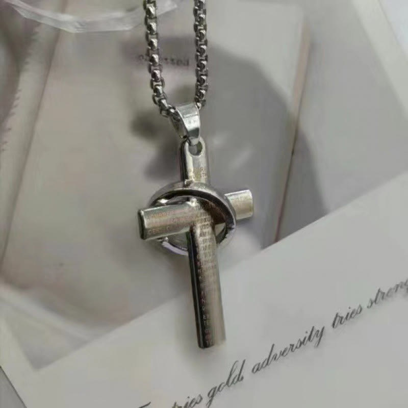 Cross Pendant With Scripture Engraved Necklace