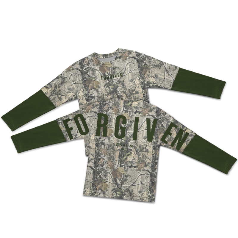 Dead Leaves Camouflage Forgiven Psalm 32:1 Print Layered-style T-shirt