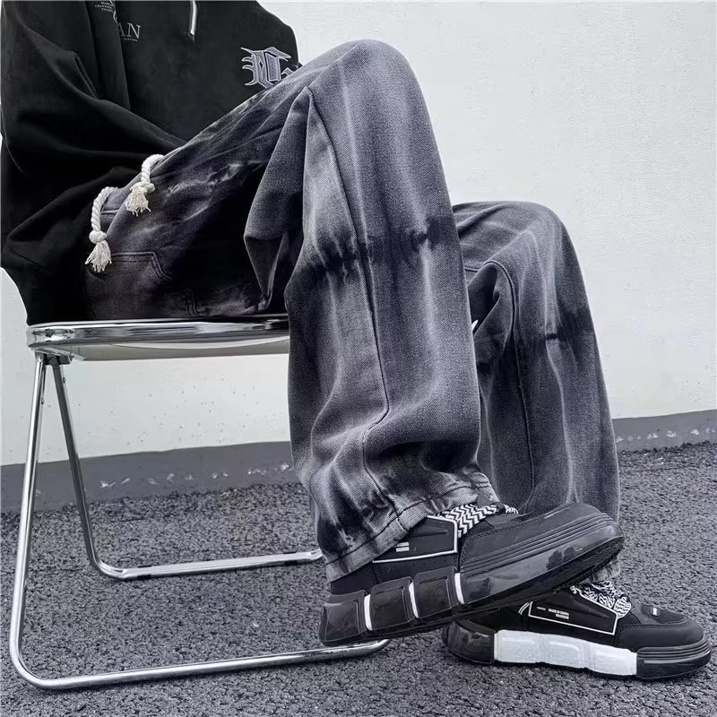 Drawstring Tie-dye Loose Straight-leg Jeans