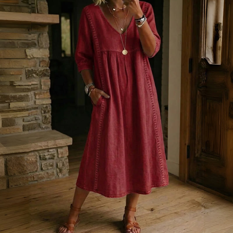 Elegant Solid V-neck Half Sleeve Maxi Dress