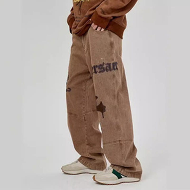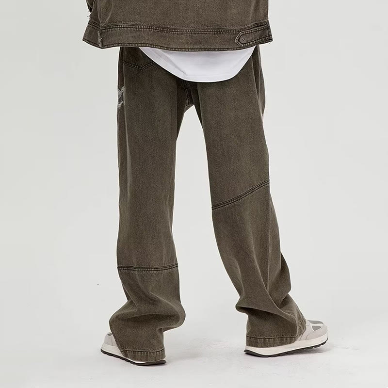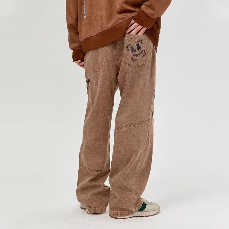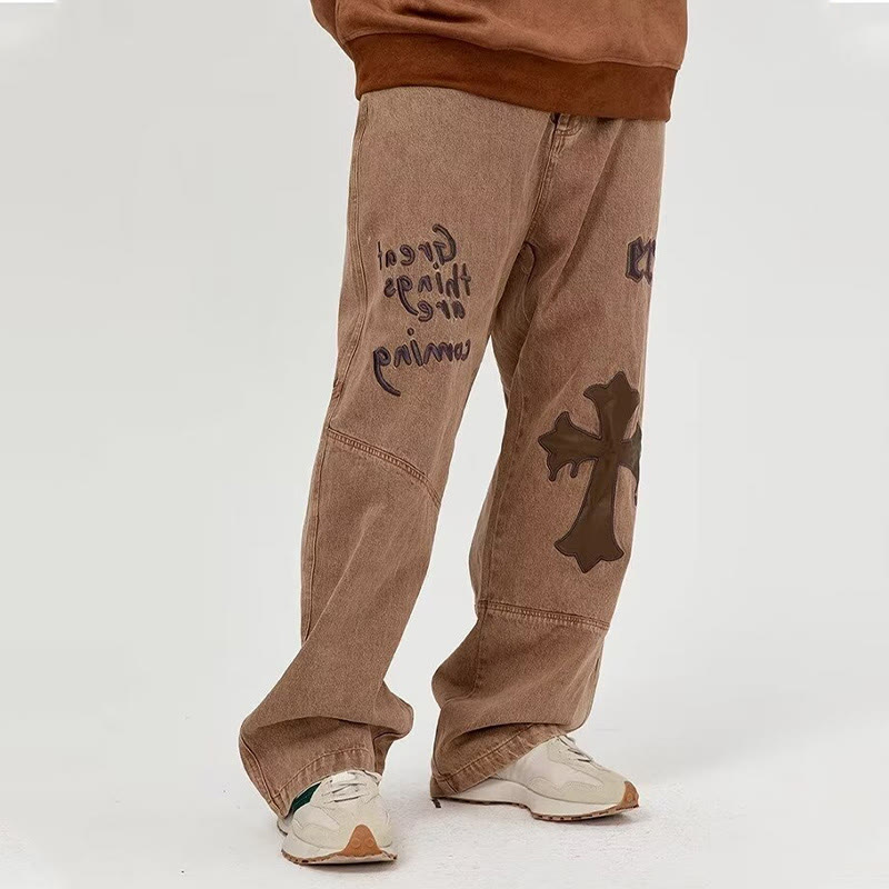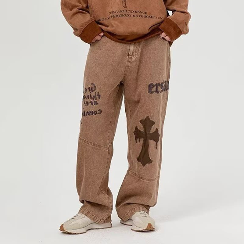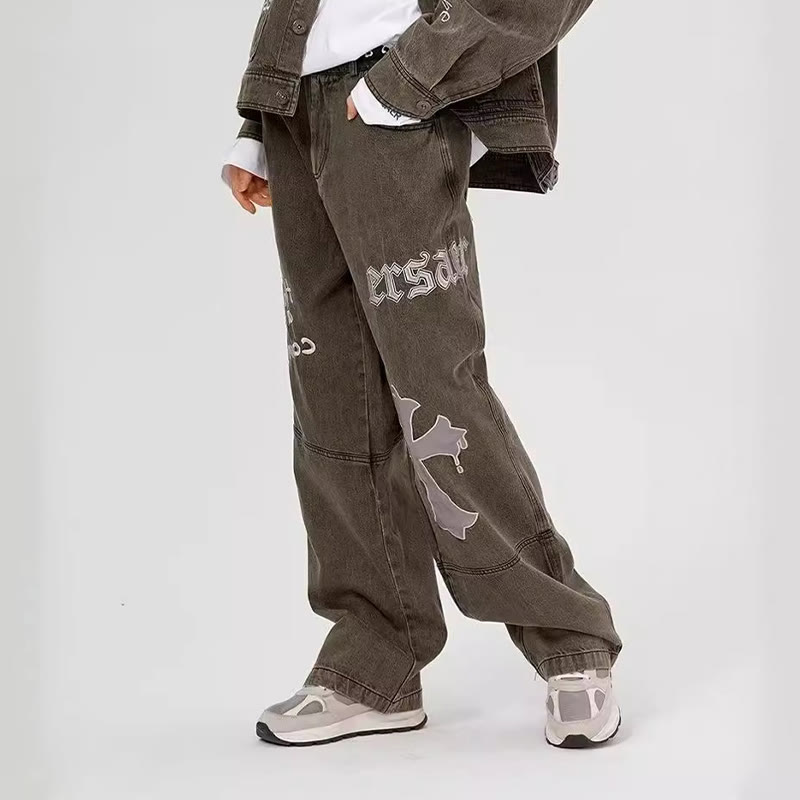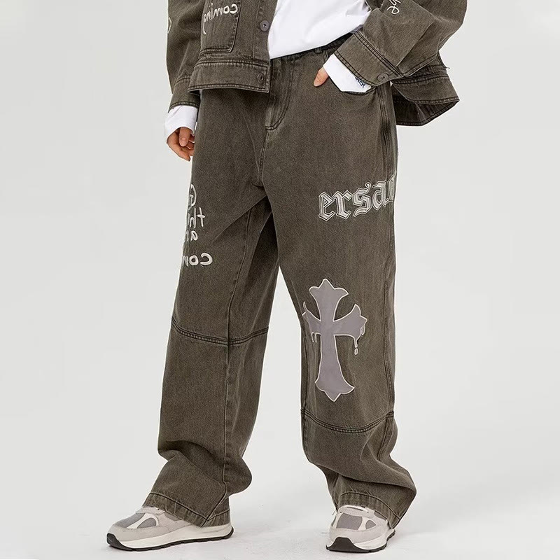 Embroidered Cross Loose Jeans