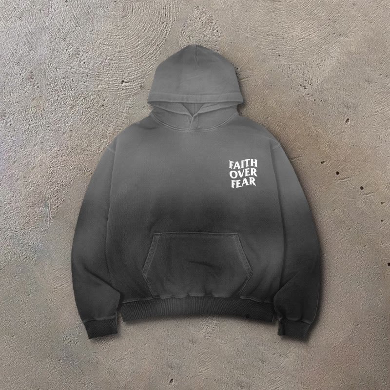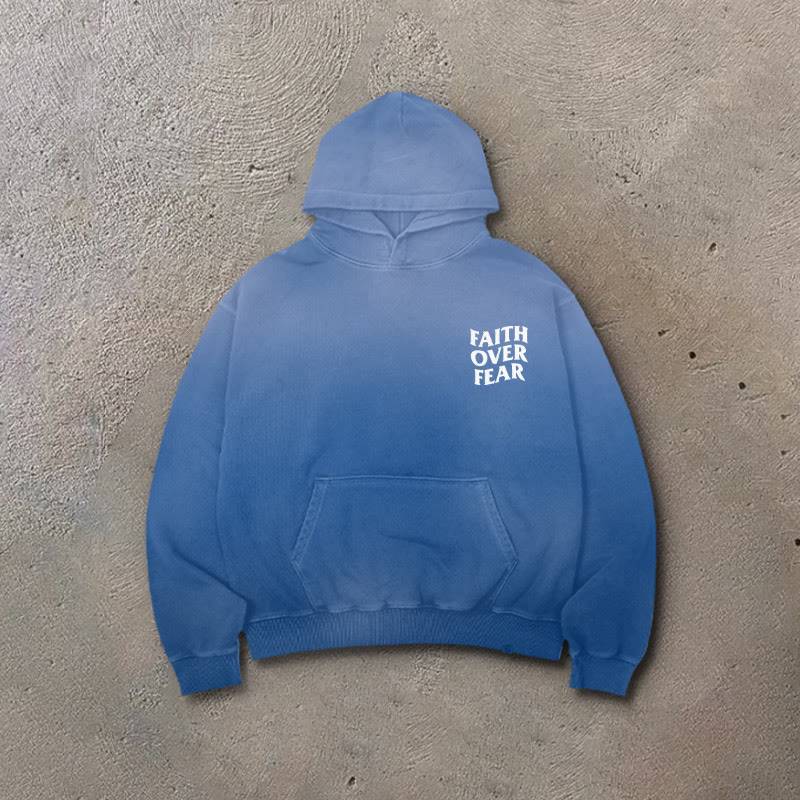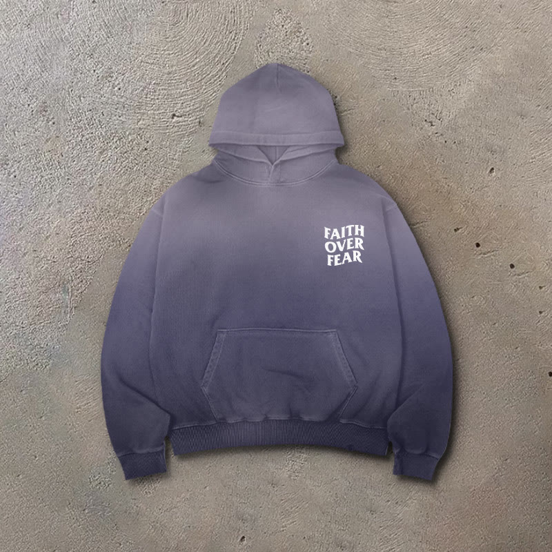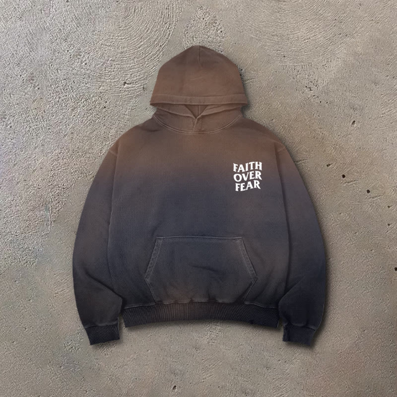 Faith Over Fear Ombre Print Vintage Hoodie