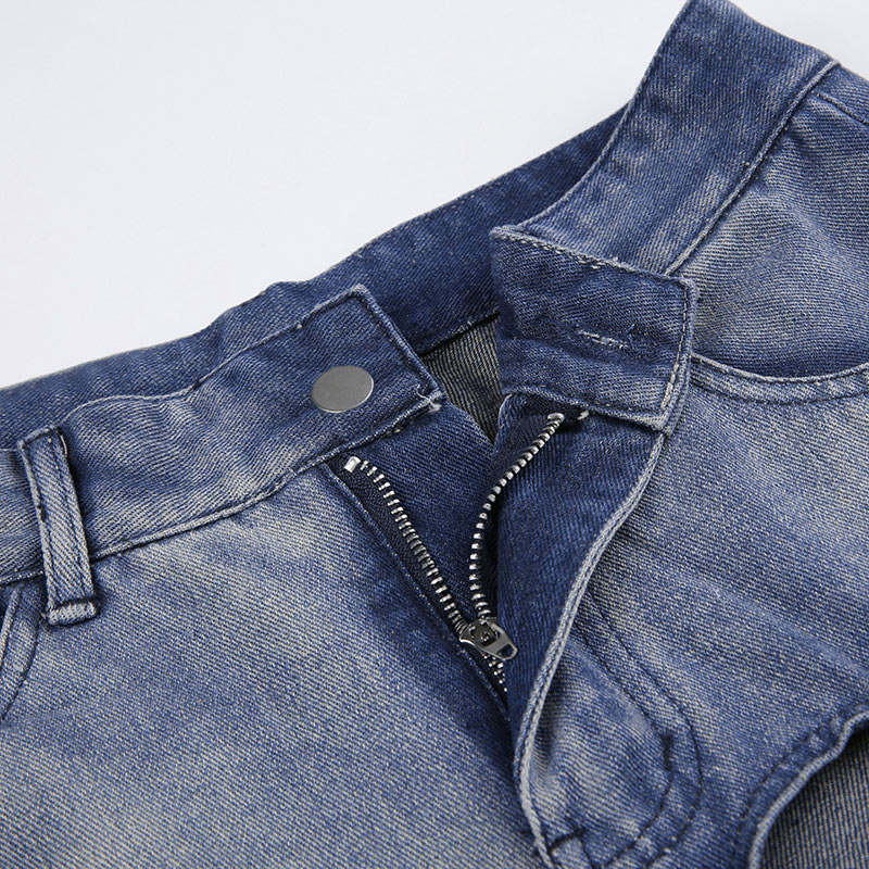 Fashionable Ombre Washed Distressed A-Line Skirt High Slit Denim Skirt