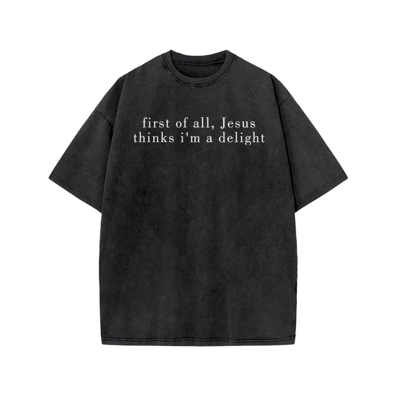 First Of All, Jesus Thinks I'm A Delight Print Acid Washed T-shirt