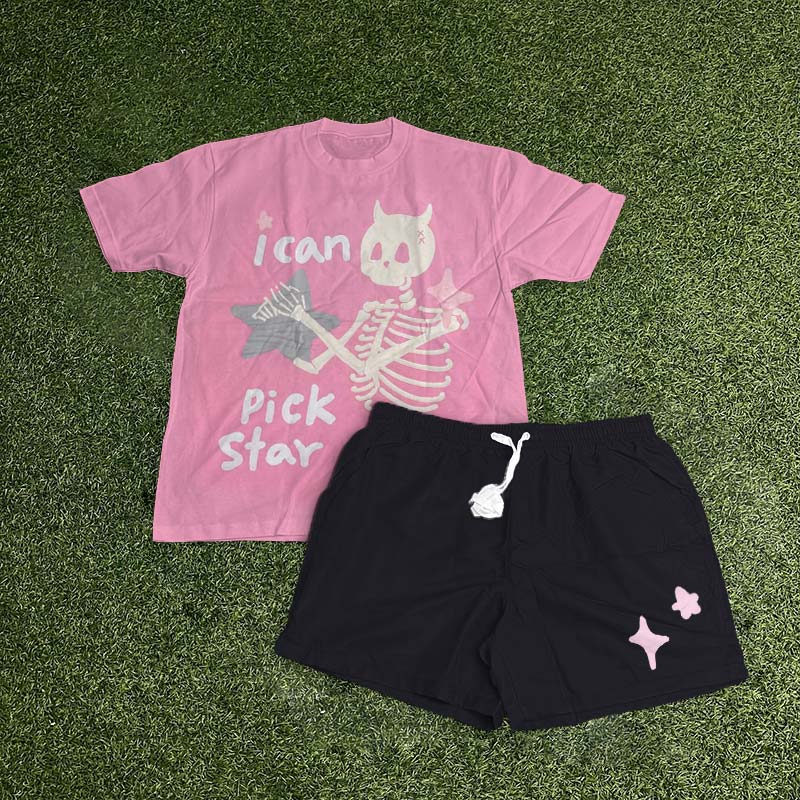 I Can Pick Star Skull Print T-shirt Set