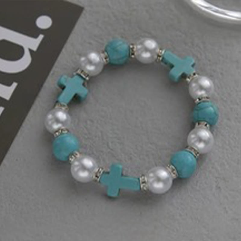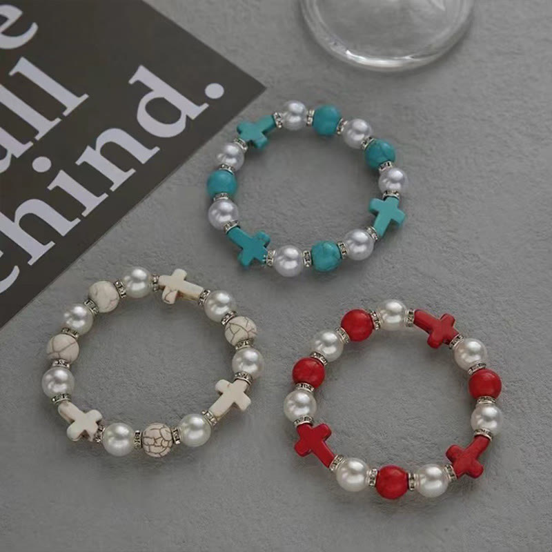 Imitation Pearl Cross Bracelet