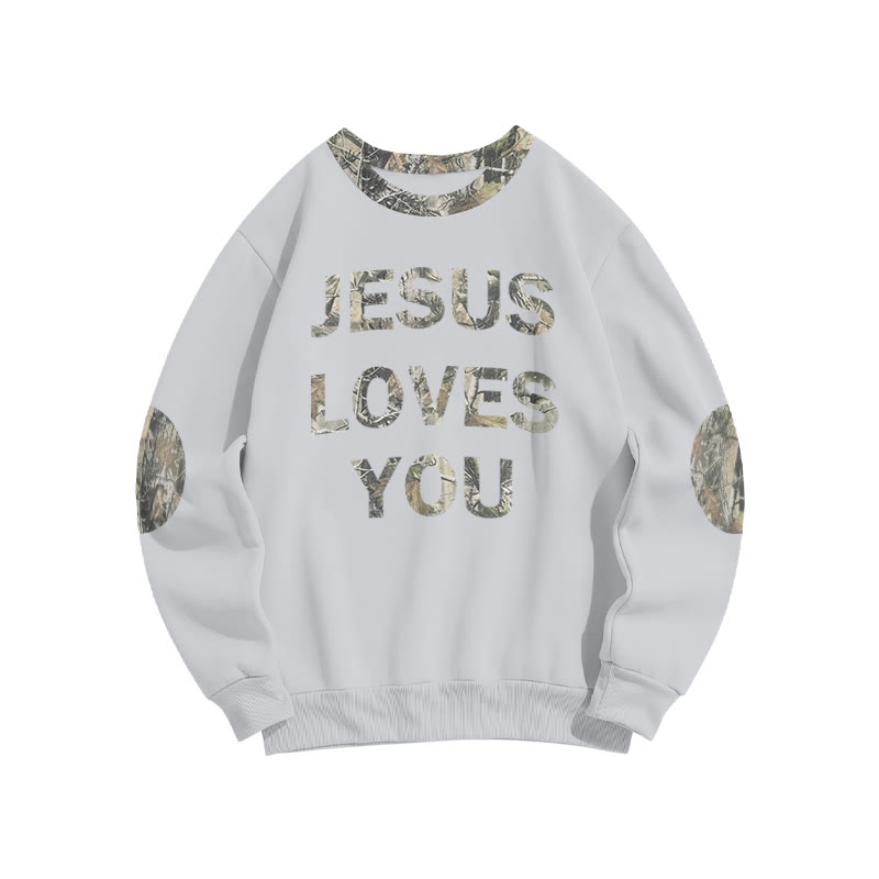 Jesus Loves You Dead Leaves Camouflage Front Print Sweatshirt