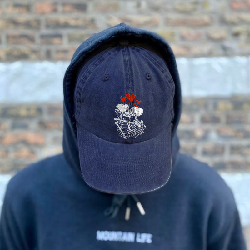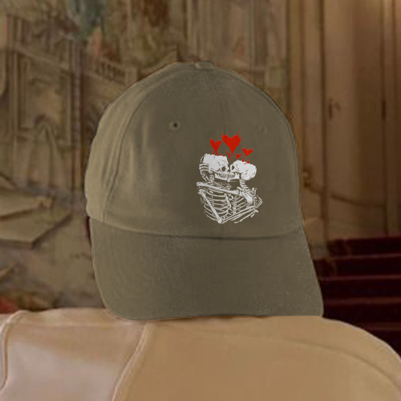 Kissing Skull Print Washed Cap