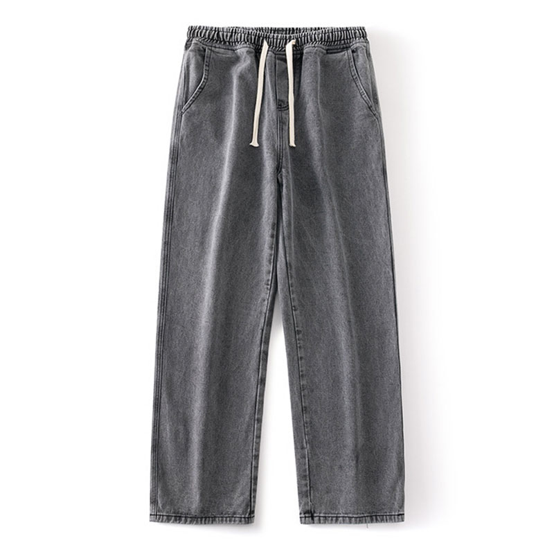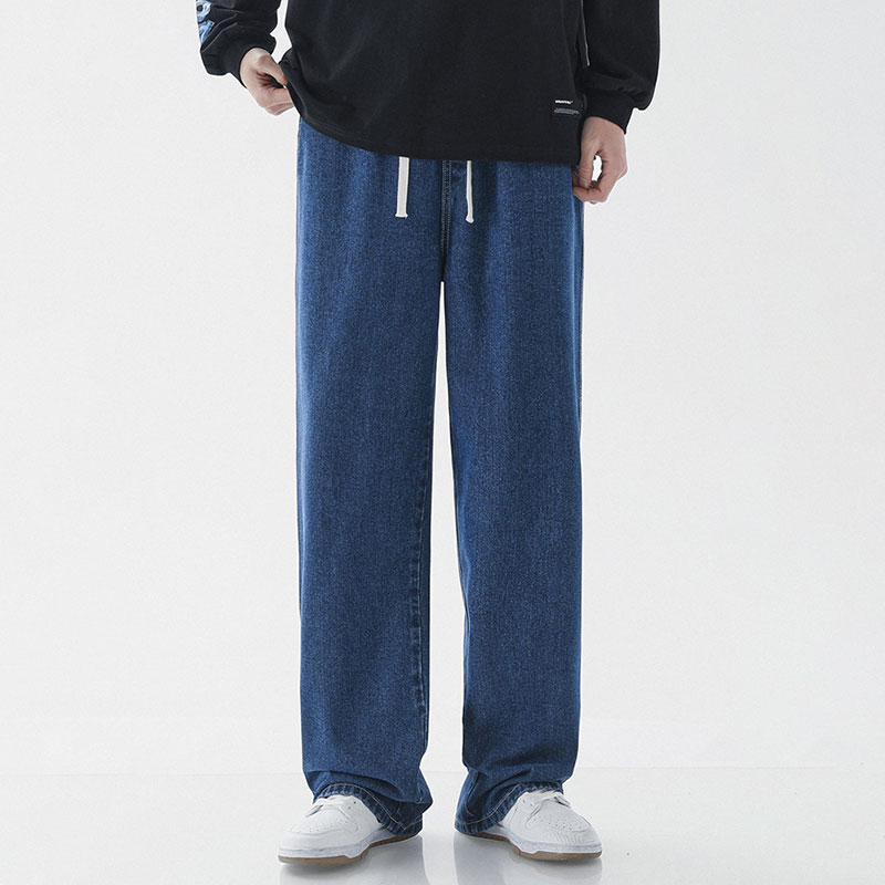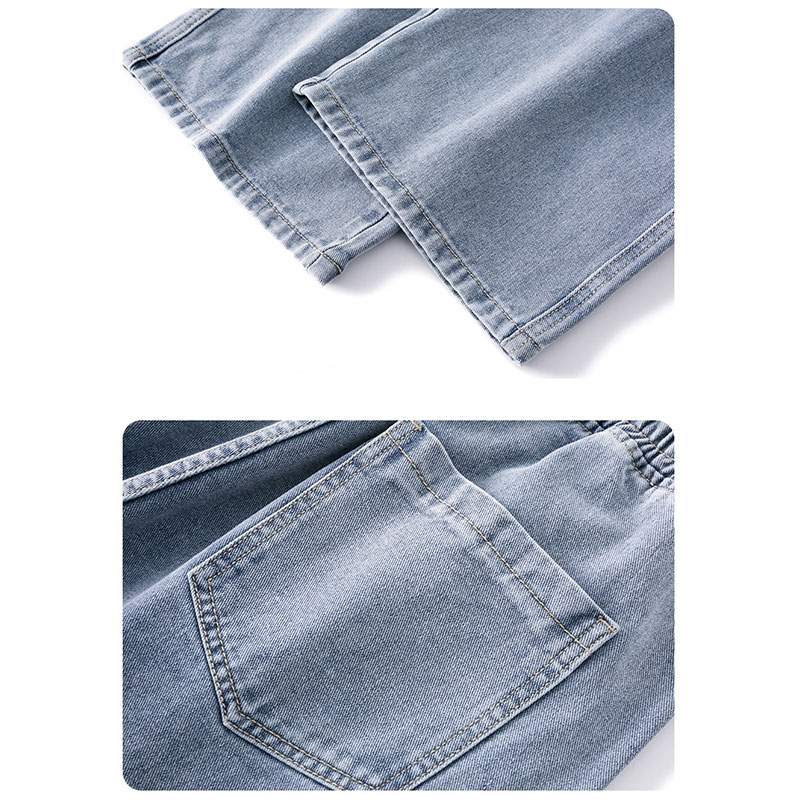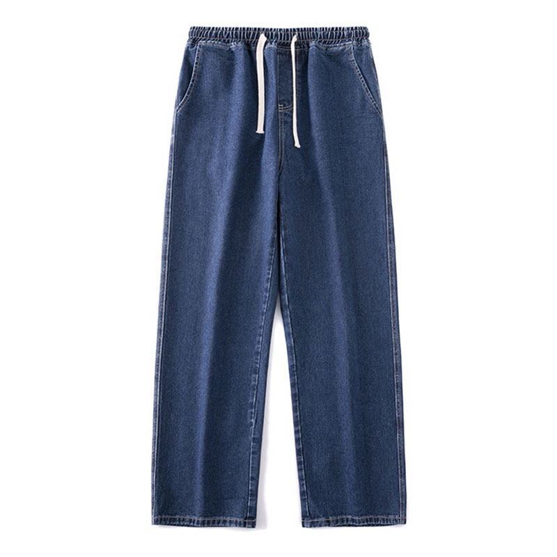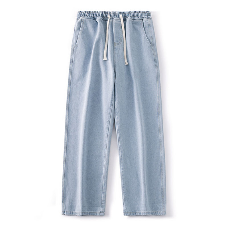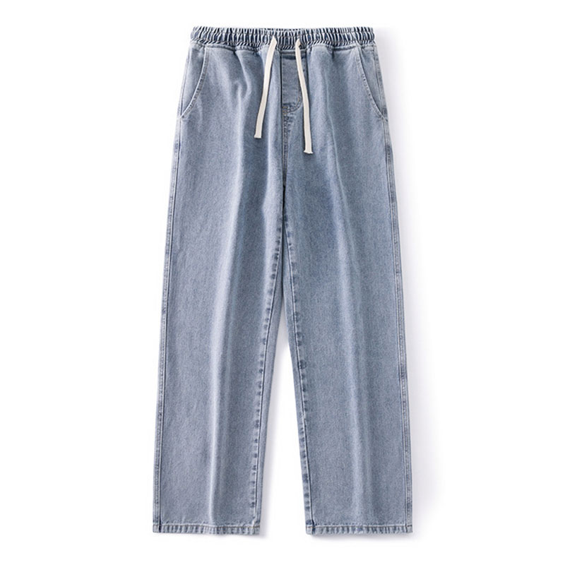 Loose Straight Fit Elastic Waist Casual Jeans