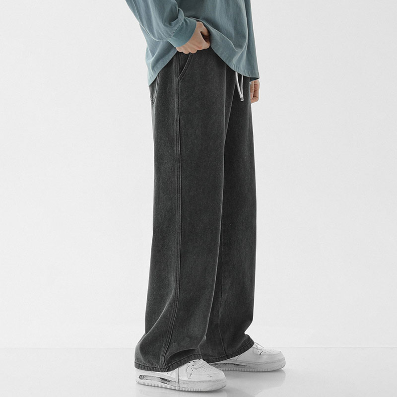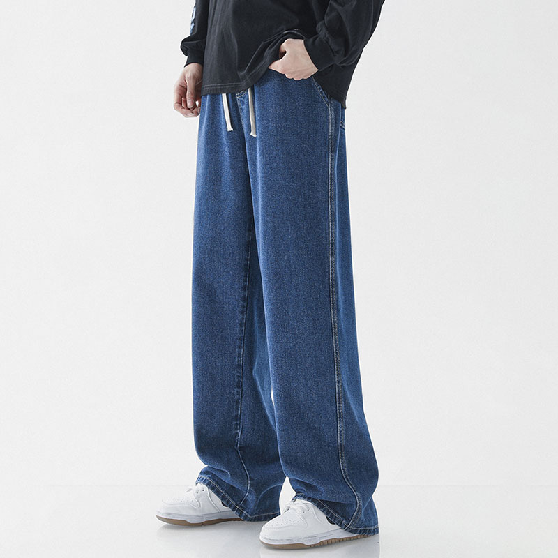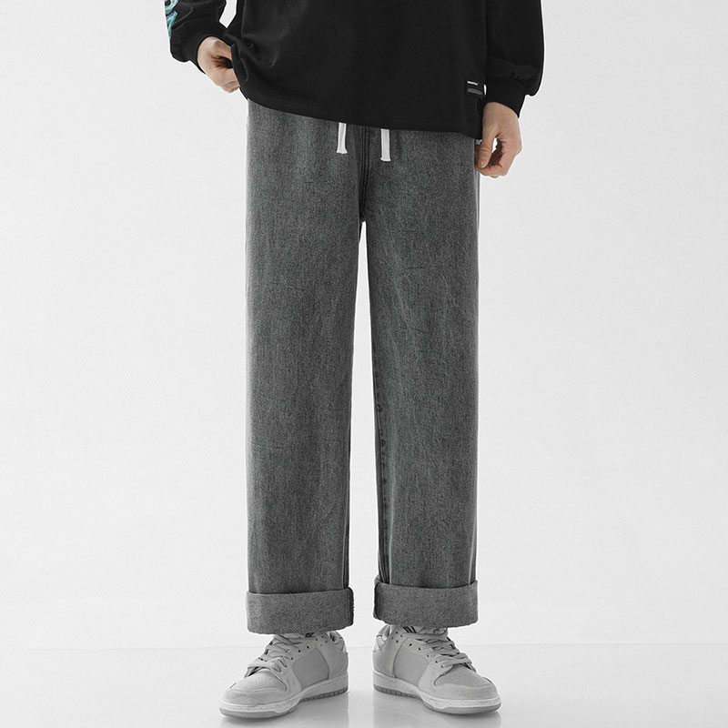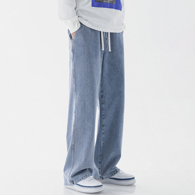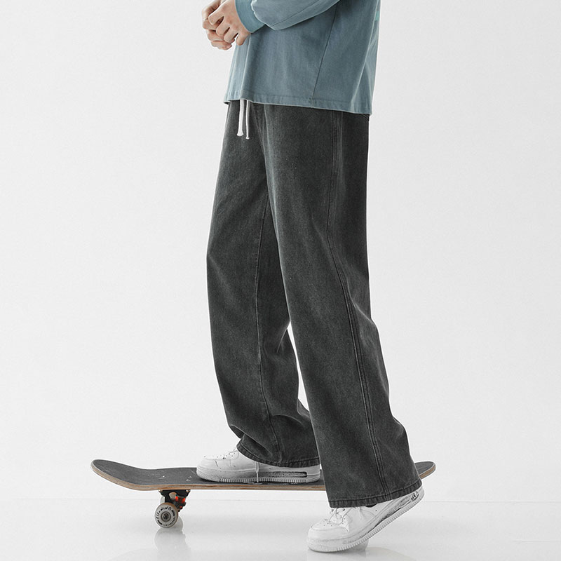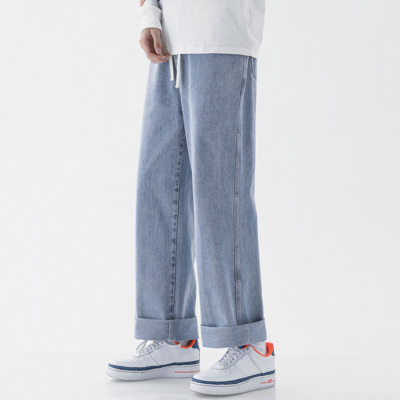 Loose Straight Fit Elastic Waist Casual Jeans