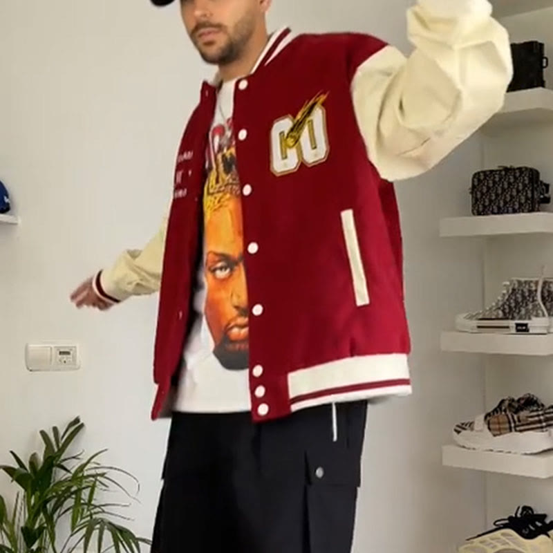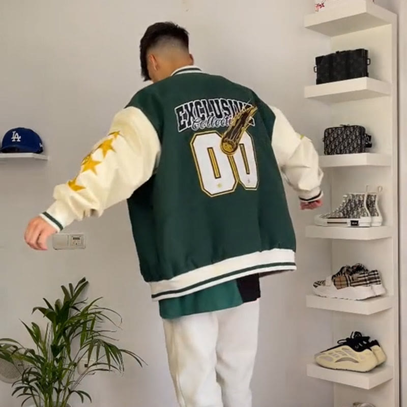 Men's Casual Vintage Exclusive Print Varsity Jacket