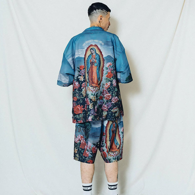 Mother Mary Icon Print Short Sleeve Shirt Set