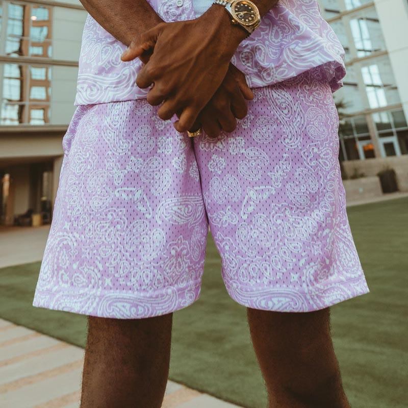 Paisley Print Mesh Shorts