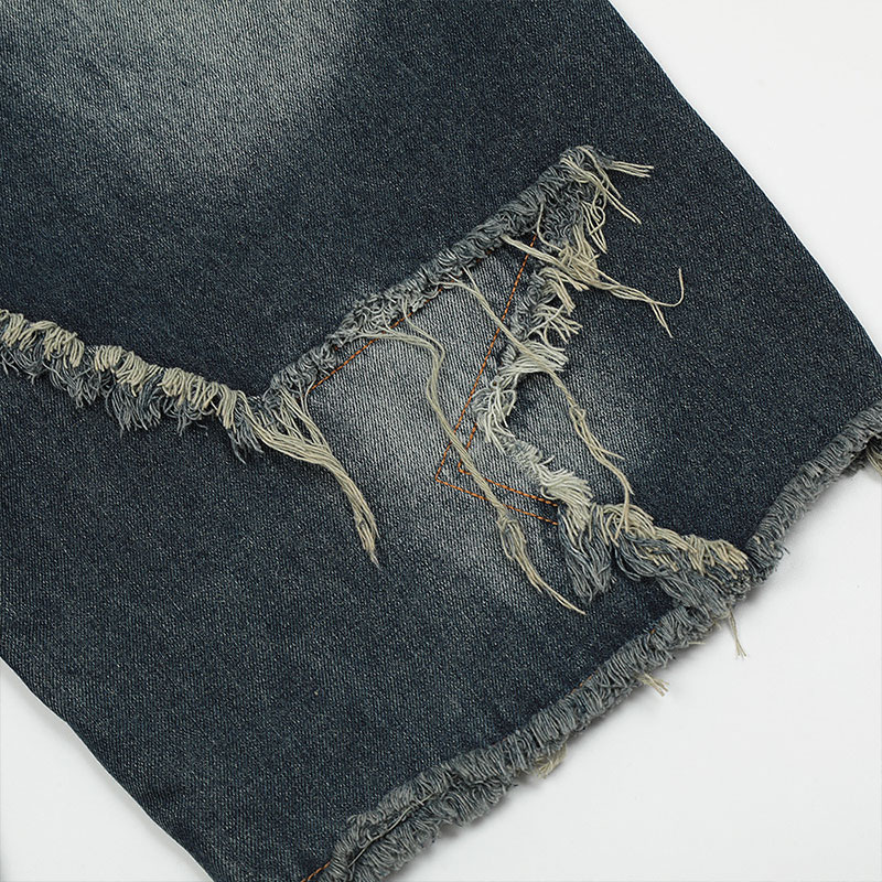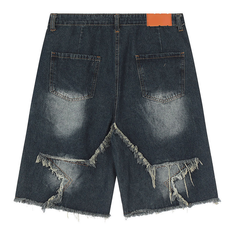 Personalized Raw Edge Five-pointed Star Patch Embroidered Straight Denim Shorts