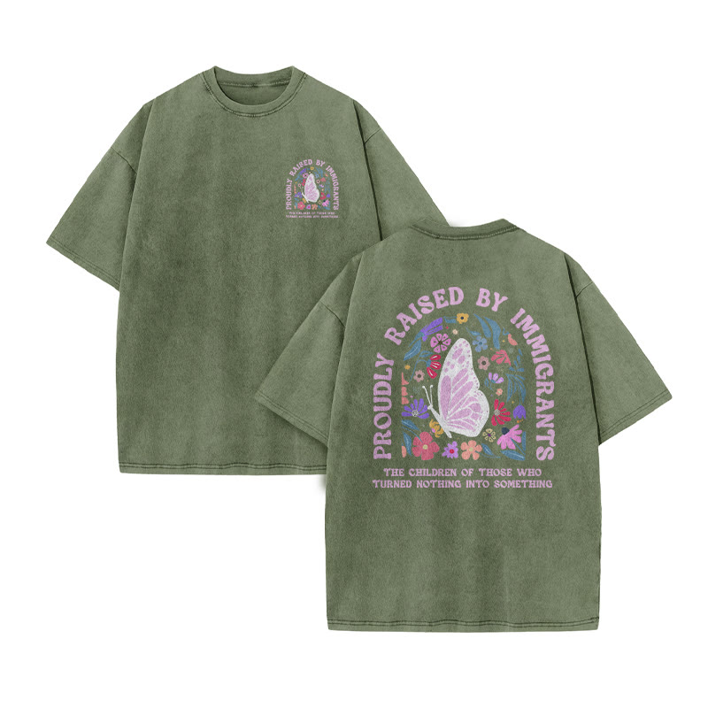 Proudly Raised By Immigrants Print Acid Washed T-shirt