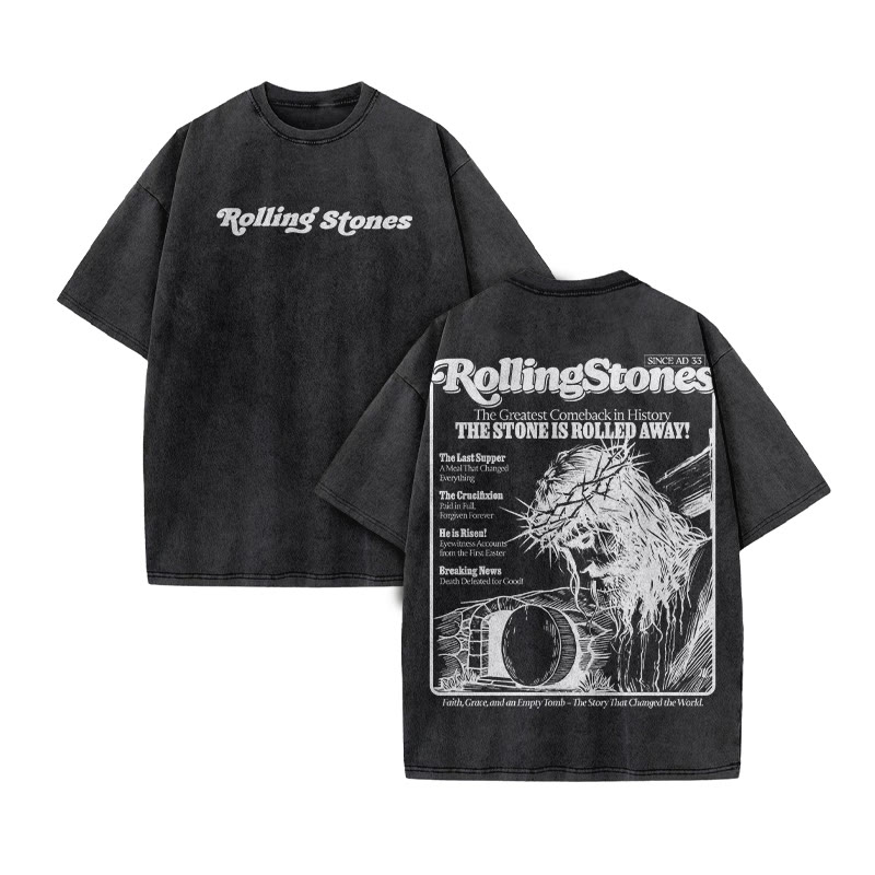Rolling Stones The Stone Is Rolled Away Print Acid Washed T-shirt