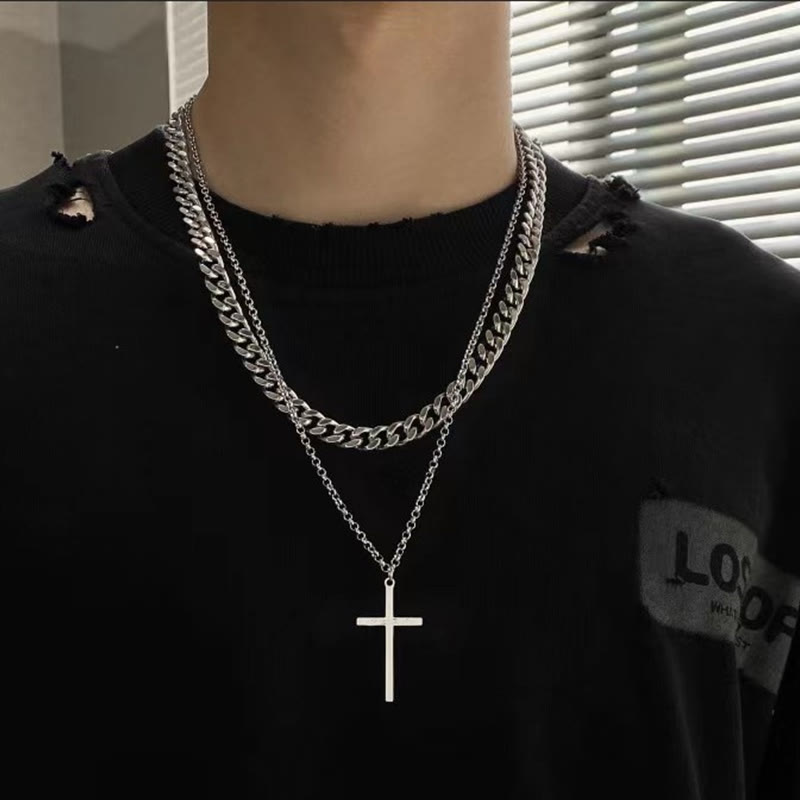 Simple Cross Double Layer Necklace