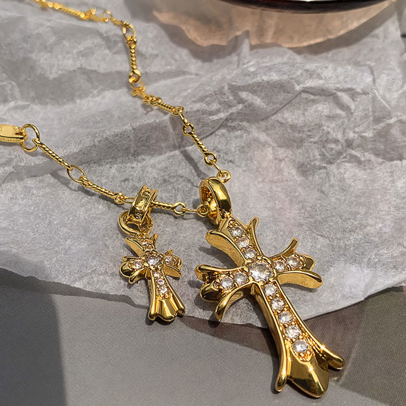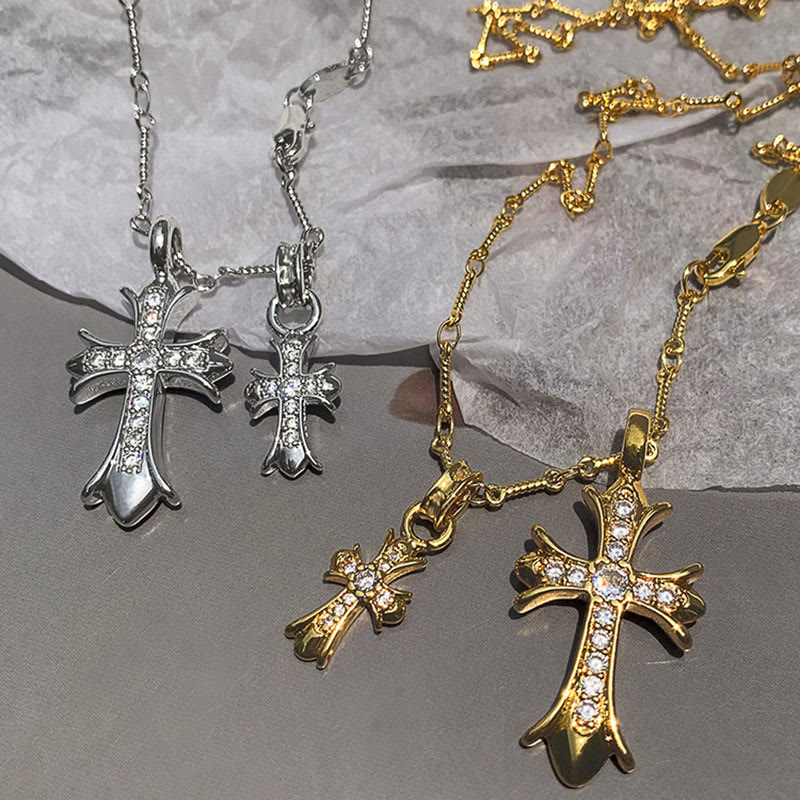 Simple Two Diamond Cross Necklace