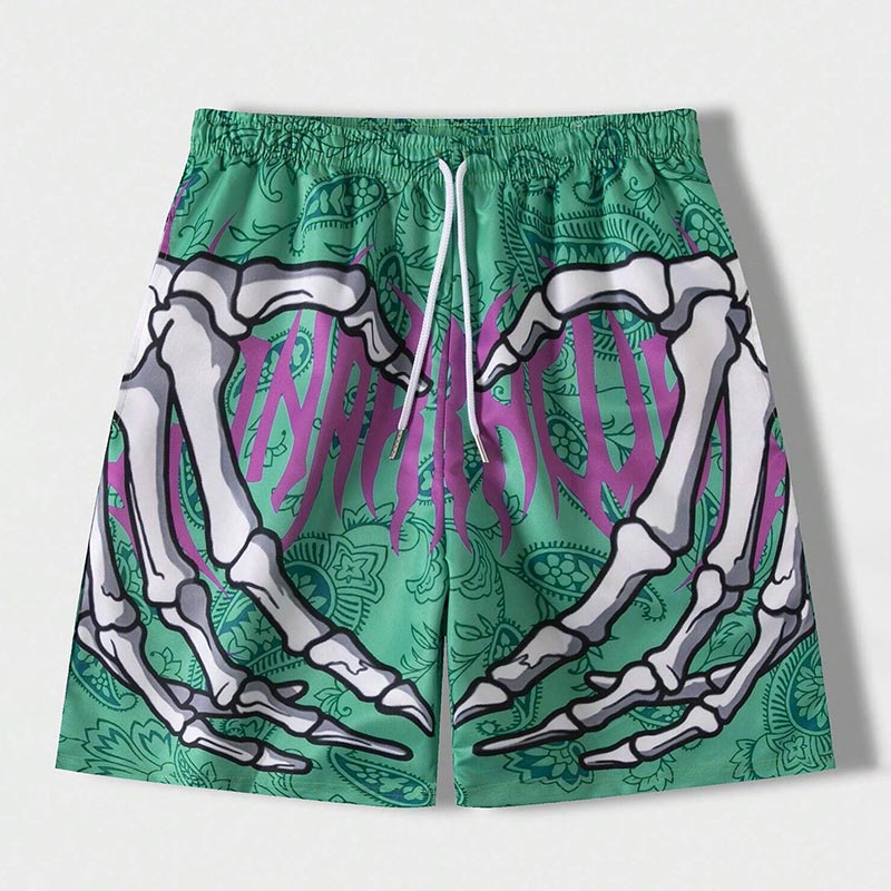 Street Life Men's Skull & Paisley Print Drawstring Waist Mesh Shorts