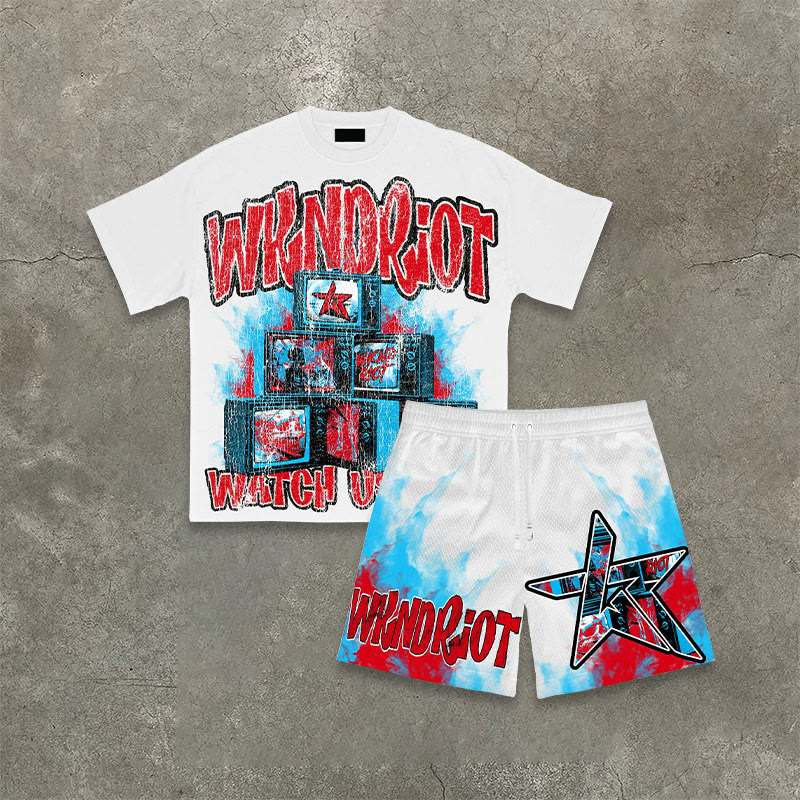 Street Style Watch Us Riot Tv Print T-shirt Set