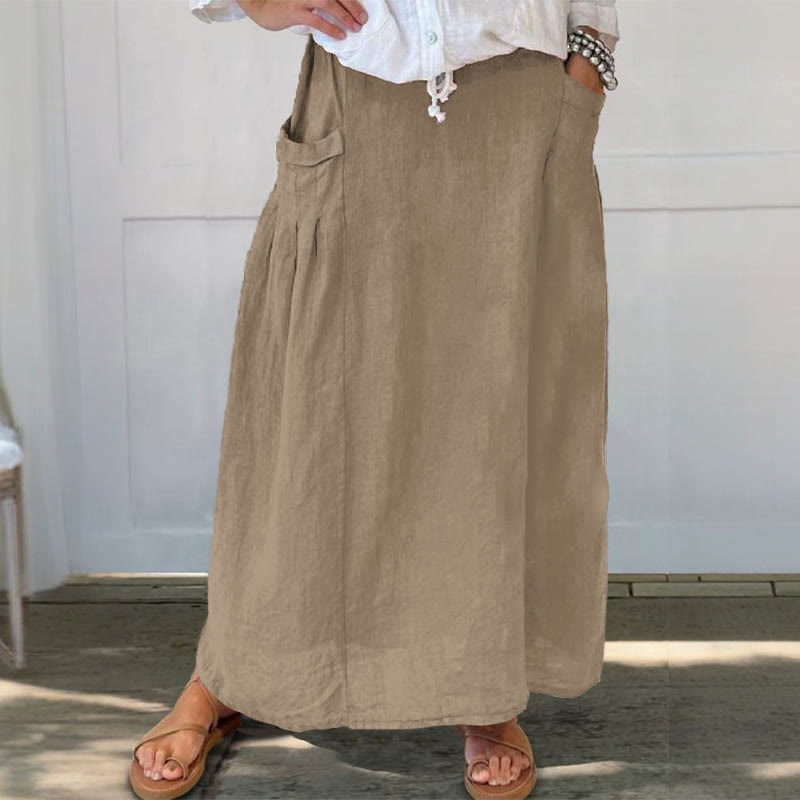 Summer Simple Solid Color Casual Pocket Skirt