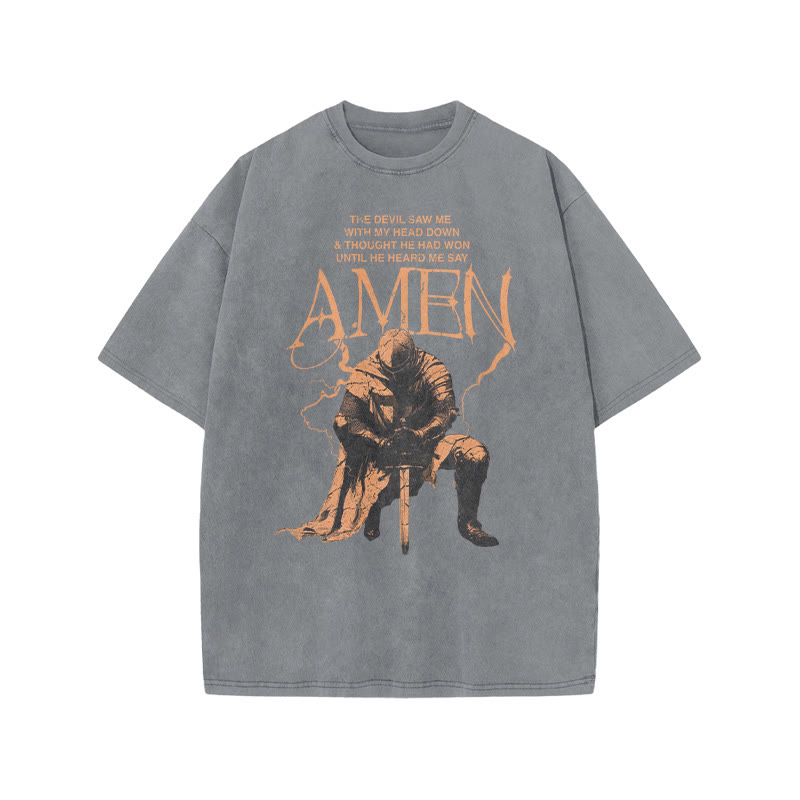 Unisex Amen Print Acid Washed T-shirt