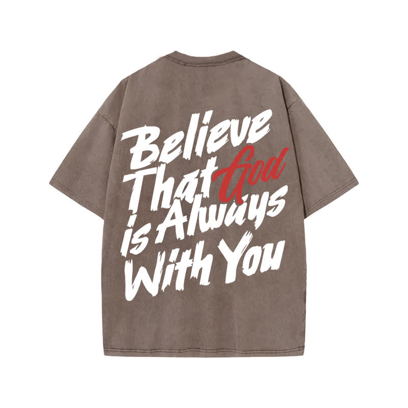 Unisex Believe That God Is Always With You Print Acid Washed T-shirt
