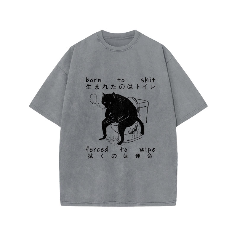 Unisex Born To Shit Forced To Wipe Print Acid Washed T-shirt