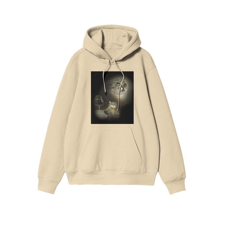 Unisex Cat And Wine Print Hoodie