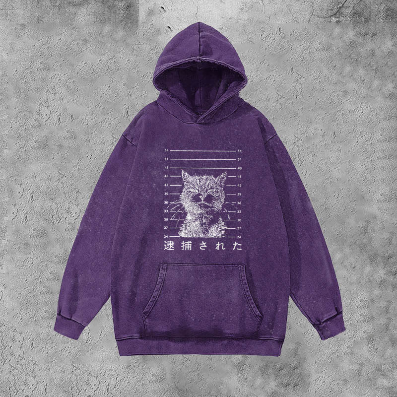 Unisex Cat That Was Arrested Printed Washed Hoodie