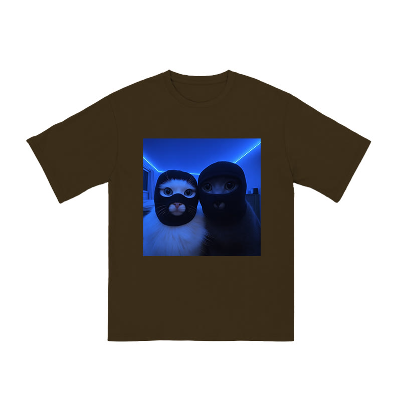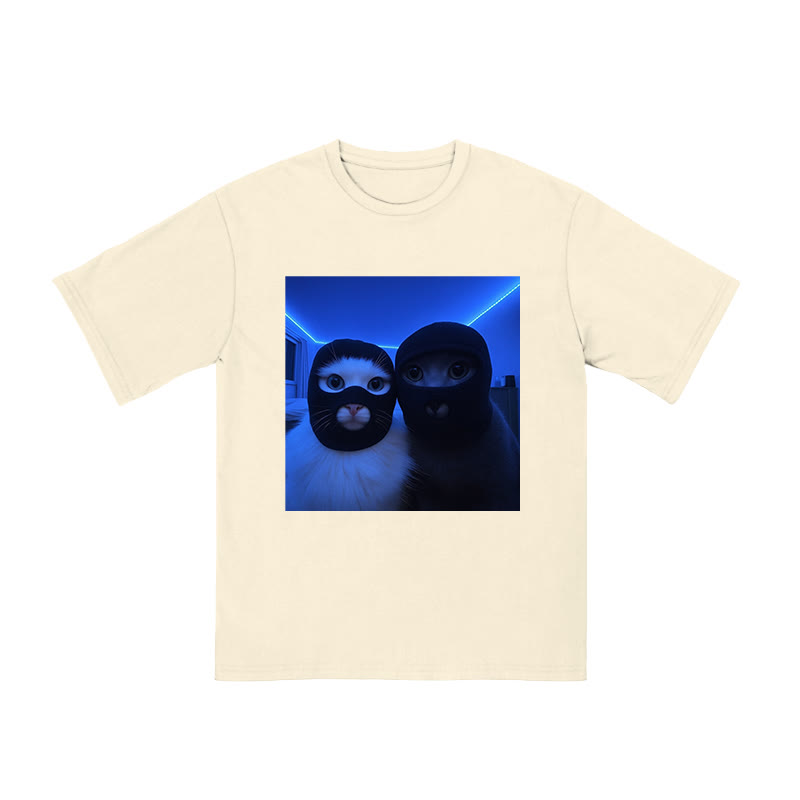 Unisex Cats Wearing Robber Mask Print T-shirt